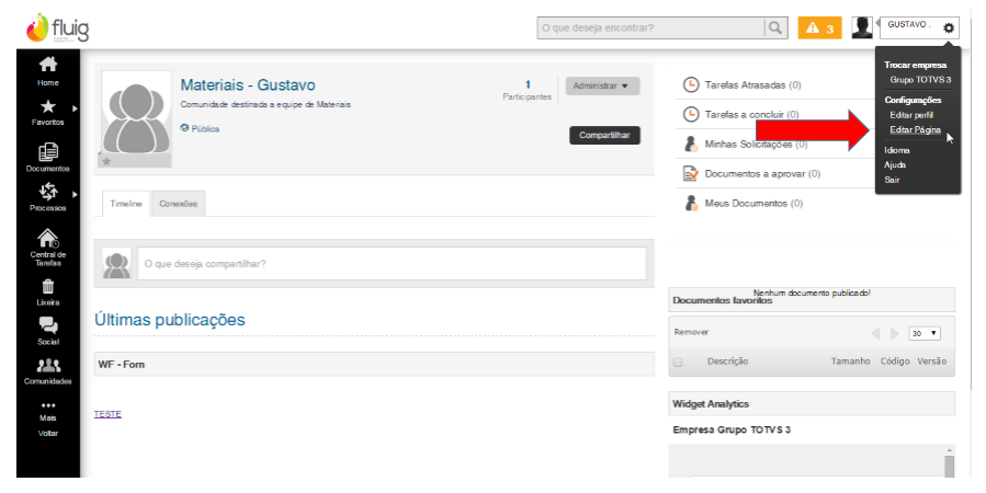 Acesse uma comunidade em que o usuário logado seja administrador e clique em 'Editar Página'