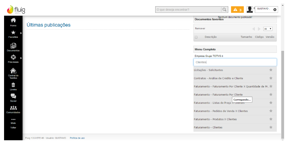 Favoritos: Exibe todas as rotinas de Menu do usuário na empresa selecionada que foram marcadas como favoritas.