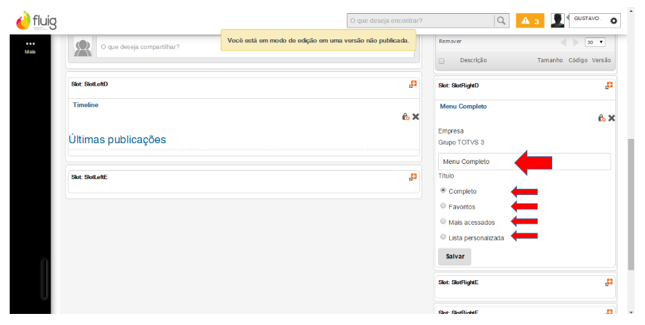 Lista Personalizada: Permite que o administrador da página consiga selecionar de uma lista as rotinas que serão exibidas para os usuários.