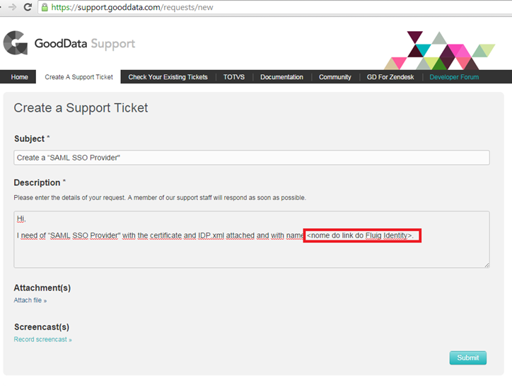 Solicitação de SSO Provider do Fluig Identity no GoodData
