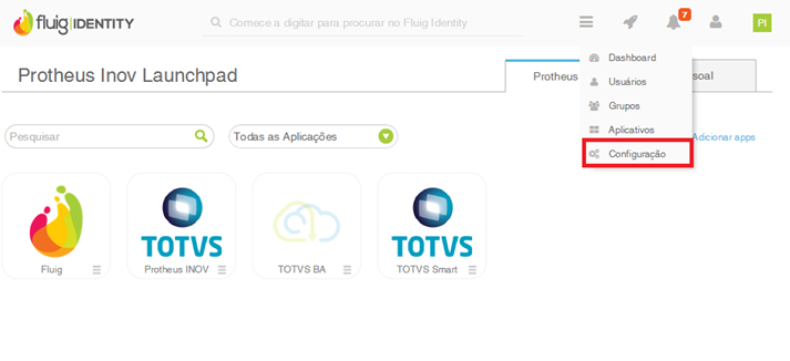 Observação: Substitua o item <nome do link do Fluig Identity> com o link do Fluig Identity. Exemplo: protheus-inov.thecloudpass.com.