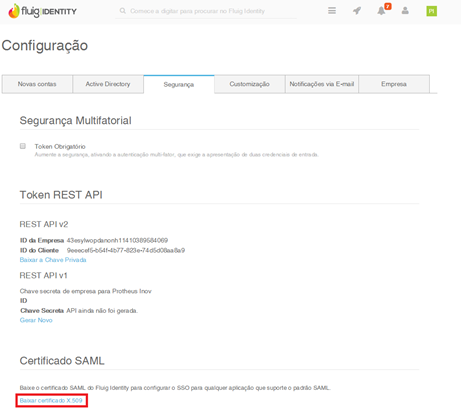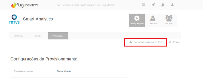 Além do certificado X.509, baixe o Metadados do IDP. Para baixar este arquivo siga os passos pelo Fluig Identity: