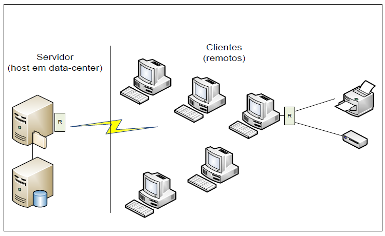 1 servidor (2 processadores) de Aplicações E Terminais (Windows Server + Windows Terminal Services):