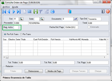 En el pago realizado a proveedores, la consulta de Régimen de Actividad vinculada a la Orden de Pago, puede ser realizado en la Consulta de Órdenes de Pago.
