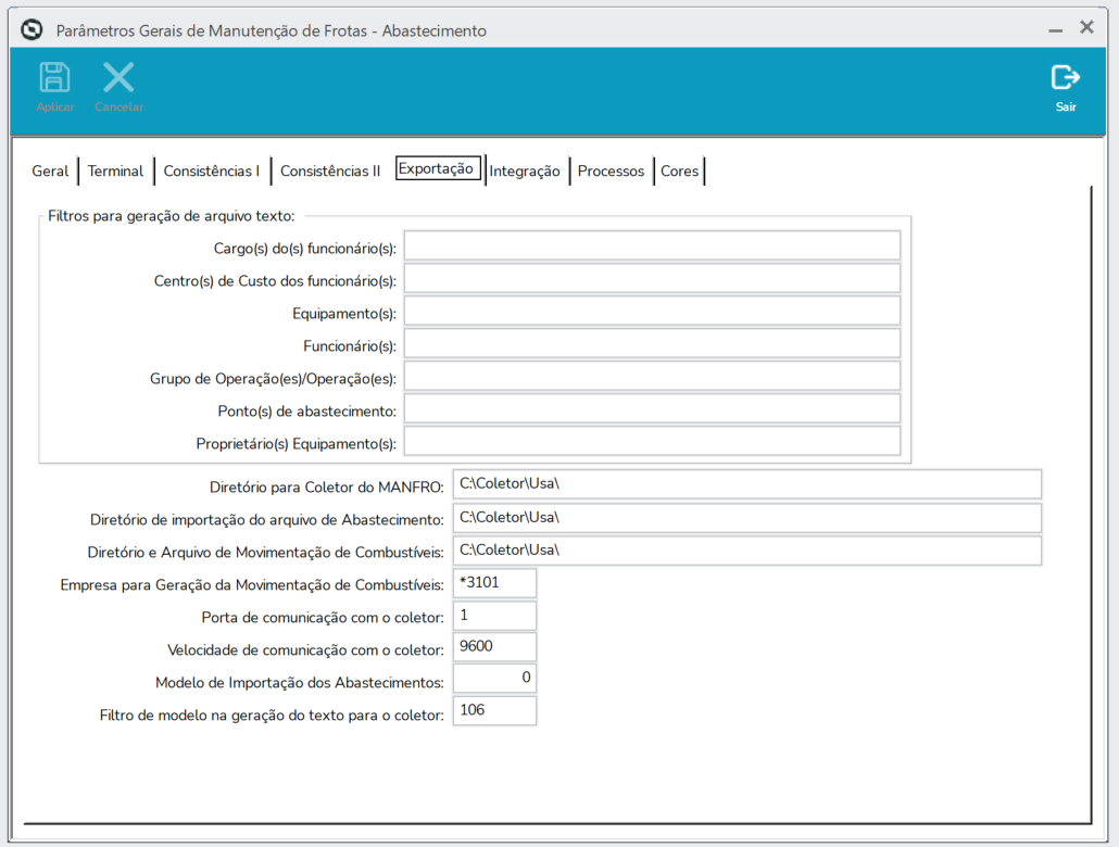 Nas telas anteriores, visualizamos os Parâmetros utilizados pela aplicação Manfro Abastecimentos.
