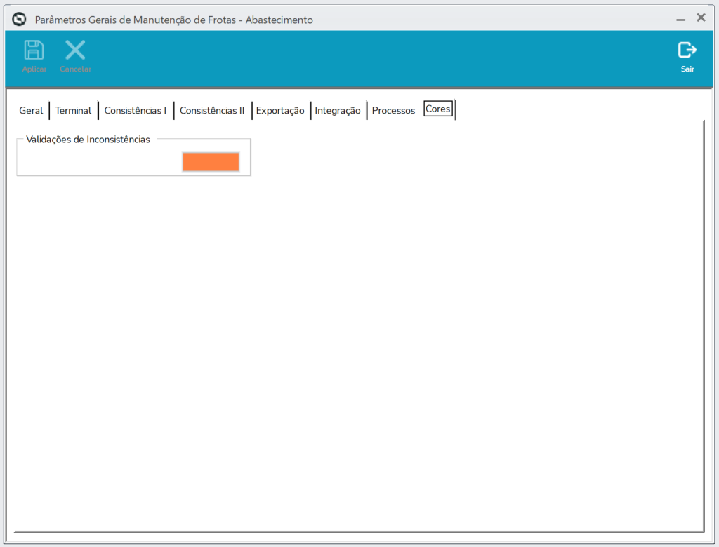Validações de Inconsistências | Informe a cor desejada para "sinalizar" o campo/coluna inconsistente. Tecle F4 para selecionar. |