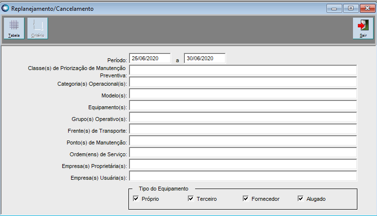 | Equipamento(s) | Informe o equipamento, caso queira utilizar como filtro. Tecle F4 para ver as opções. |
