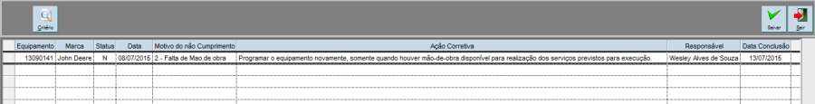 Demonstra o status da ação corretiva prevista para a justificativa do planejamento de manutenção não realizado. Campo editável, sendo seus valores validos "S" ou "N". |