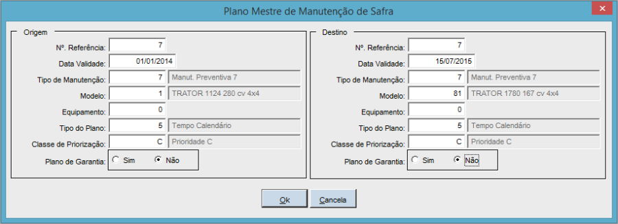 Objetivo: Realizar cópias de planos mestres de manutenção de safra, gerando novos planos com base nas informações de origem, neste caso a cópia é sempre da e para a mesma instância.