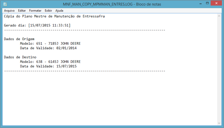 Objetivo: Realizar cópias de planos mestres de manutenção de entressafra, gerando novos planos com base nas informações de origem.