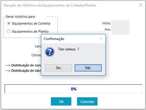 Após selecionar qual o Histórico será gerado e a data final, clique no botão "OK" para prosseguir ou no botão "Cancelar" para cancelar o processo.