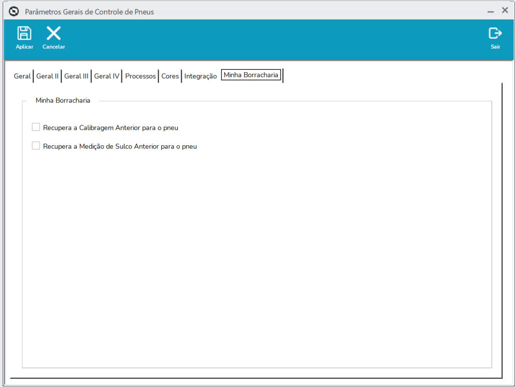| Recupera a Medição de Sulco Anterior | Habilita/desabilita a recupeção da medição de sulco anterior para o pneu |