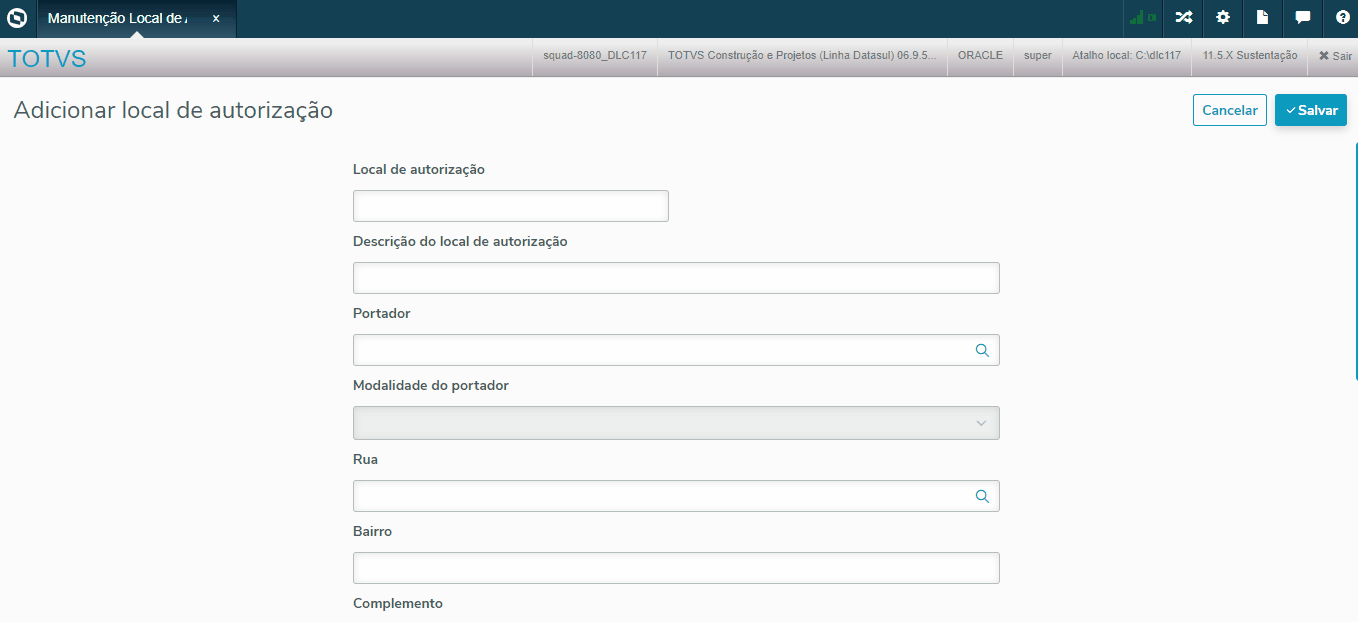| Descrição do local de autorização | Descrição para esse Local de Autorização. |