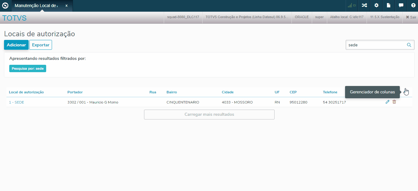 | Gerenciador de colunas | Marcar ou desmarcar as colunas conforme necessidade de exibição. |