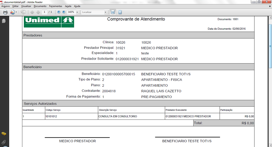 | Carteira | Mostra a carteira do beneficiário do documento. |