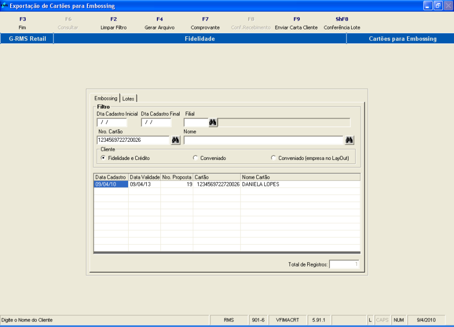 - Acessar o programa Painel de Controle do Fidelidade (VFIMPAIN)