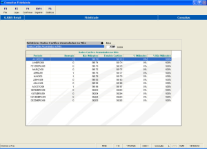 Em seguida, o sistema apresenta na grade de tela a informação por filial, contendo as informações de acordo com o relatório selecionado no leque de opções.