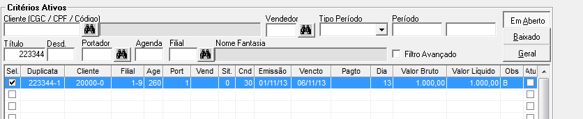 - Ao acionar a tecla ShF9 – Filtrar: o sistema irá executar uma pesquisa baseada nos dados do filtro, caso existam, e retornará o resultado na grade.