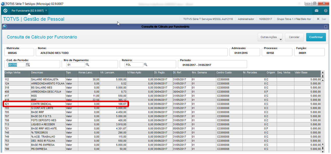 Passo a passo: | O sistema terá tratamento através do campo de contribuição sindical no cadastro do funcionário. Sempre que o funcionário formalizar ao RH da empresa que deseja que o desconto seja realizado, o usuário do sistema deverá acessar o cadastro e alterar o campo de contribuição sindical para “S”, após realizar este cálculo a rotina de fechamento irá alterar o campo para “N” o que implicará em não pagar mais a contribuição no ano seguinte. Funcionário afastado o mês todo de março e retornou em abril - Cálculo em março não possui desconto - Cálculo em abril não possui o desconto - Cálculo em maio possui o desconto Obs: Sistema calcula a contribuição sindical para funcionários que trabalham no mínimo 2 dias em março. Caso queira uma quantidade de dias diferente do padrão, basta criar o parâmetro “MV_DTRSIND” e incluir a quantidade de dias desejado. |