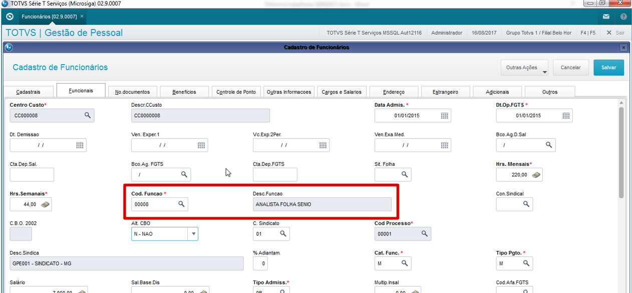Passo a passo: | Funcionamento do sistema: - Gestão de pessoal (SIGAGPE): - Funcionário estará em determinada função com adicional vinculado a ele: - Alterar a função - Retirar o adicional do cadastro de funcionário OBS: Será necessário incluir motivo de alteração salarial e data de alteração para o sistema permitir esta edição. - Ponto eletrônico (SIGAPON): Não terá impacto. - Medicina e Segurança do Trabalho (SIGAMDT): Não terá impacto.