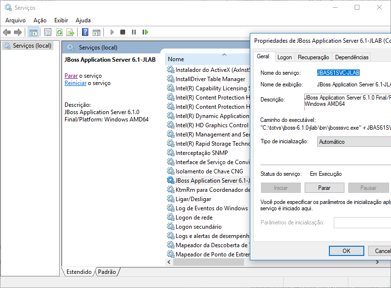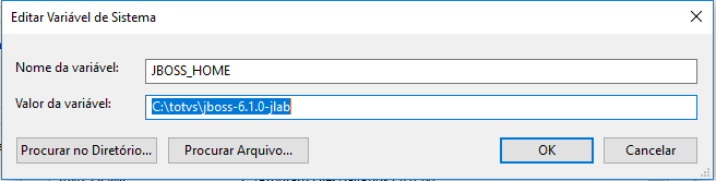 Este manual tem como objetivo fornecer os passos necessários para instalação e configuração do aplicativo Laboratório Offline Server. As instruções aqui apresentadas contemplarão desde a instalação dos softwares necessários, como o SDK Java e Servidor de Aplicações JBoss 6.1.0, bem como a implantação da aplicação nestes ambientes, em plataforma Windows. 2. Instalação da JDK Com a versão 1.6 (64 bits) do instalador à disposição, proceda com a execução do mesmo: No próximo passo configuraremos os diretórios de instalação: Clicando em change, alteraremos o caminho de instalação para: C:\totvs\jdk Após confirmar e prosseguir, será iniciado o processo de instalação: Na sequência será solicitado o local de instalação do JRE (Java Runtime Environment). A instalação deste Runtime não é necessário para o funcionamento do CCTServer, mas recomenda-se sua instalação (caso o sistema já não tenha uma versão instalada) pois os consoles de administração do servidor de aplicações se baseiam em Applets, que exigem um JRE. Como caminho para o JRE, informe C:\totvs\jre. Ao clicar em Finish encerramos a instalação. Não é necessário registrar o produto (opcional). b. Variáveis de Ambiente Definir as seguintes variáveis de ambiente abaixo como sendo do sistema: Nome da variável: JAVA_HOME Valor da variável: C:\totvs\jdk Inserir na variável Path: %JAVA_HOME%\bin;(restante do path) c. Teste da instalação Ao acessar o terminal, o comando abaixo pode ser executado para verificar se a instalação e configuração foram realizadas com sucesso. Após a execução do comando deve ser possível visualizar as informações da versão instalada. C:\> java –version d. Problemas na instalação Caso ocorra algum problema na instalação, consultar o manual Online citado nas referências para resolução, e em segundo nível o suporte da TOTVS. 3. Instalação do Servidor de Aplicações JBoss 6.1 Para a implantação do Laboratório Offline Server a instalação de um Servidor de Aplicações é exigida. O único servidor de aplicações homologado para a execução do Laboratório Offline atualmente é o JBoss Application Server, em sua versão 6.1.0. O software JBoss AS é multiplataforma, o que significa que seu instalador pode ser utilizado para diversos sistemas operacionais e plataformas (32 bits e 64 bits) que suportem a plataforma Java. 3.1. Requisitos Mínimos: - 10 GB de espaço em disco disponíveis; - JDK Instalada Após obtenção do pacote, descompacte o mesmo no diretório C:\totvs para realizar a instalação. 3.2. Configurações Após instalação do JBoss, é necessário definir a variável de ambiente JBOSS_HOME como sendo de sistema, onde seu valor é o caminho para o diretório de instalação do JBOSS. Segue exemplo: JBOSS_HOME=C:\totvs\jboss-6.1.0-jlab 3.2.1. Configurando Instância do Laboratório No diretório "C:\totvs\jboss-6.1.0-jlab\server" haverá um diretório com o nome da instância do laboratório, chamado "jlab". Caso não existam os arquivos run-jlab.bat, run-jlab.conf.bat e service-jlab.bat, deve-se criar uma cópia dos arquivos run.bat, run.conf.bat e service.bat. Esse processo é necessário para que cada instância tenha sua própria configuração de memória, IP e porta. Estes arquivos referenciam-se uns aos outros e, portando, é necessário que sejam realizadas algumas mudanças em seus conteudos. No arquivo run-jlab.bat alterar a linha do exemplo para referenciar o arquivo run-jlab.conf.bat: No arquivo service-jlab.bat alterar as linhas para referenciar os arquivos run-jlab.conf.bat, run-jlab.bat e service-jlab.bat: Ainda no arquivo service-jlab.bat, alterar o nome do serviço a ser instalado: 3.2.2. Ajustando Parâmetros de Memória Para alterar a quantidade de memória disponível para a JVM (Java Virtual Machine) utilizada pelo JBoss, devemos editar o arquivo run-jlab.conf.bat, que está no diretório bin, da instalação do JBoss. Neste arquivo, procure pela linha que contenha o seguinte conteúdo: set "JAVA_OPTS=-Xms768M -Xmx768M -XX:MaxPermSize=256M" Os parâmetros -Xms e -Xmx determinam, respectivamente, a quantidade inicial e a quantidade máxima de memória que pode ser utilizada pelo servidor, e devem ser configuradas para o mesmo valor, por questão de desempenho. Neste caso do exemplo, a configuração determina 768MB de memória, que pode ser aumentado de acordo com a necessidade e disponibilidade de recursos do servidor. 3.2.3. Configurando a Instância Padrão do PIMSCS no JBoss Um dos parâmetros esperados pela aplicação Server é a instância padrão que deve ser utilizada para consultas na base de dados do PIMSCS. Esta configuração deve ser feita no arquivo run-jlab.conf.bat. Neste arquivo, procure a parte que é responsável pela passagem de parâmetros de memória para a JVM, como exemplo: set "JAVA_OPTS=-server -Xms1024m -Xmx1024m -Xss1024k -Xnoclassgc -XX:MaxPermSize=256m -XX:+UseParNewGC -Duser.language=pt -Duser.country=BR -Duser.timezone=GMT-3 -Dinstancia_default=ALBER -Dversao.jboss=JB6" O parâmetro -Dinstancia_default=INSTANCIA neste exemplo está com valor INSTANCIA, e deve ser substituído pelo nome da instância em questão. *Um ponto de atenção é o nome da instância, que deve ser escrito em caixa alta (letras maiúsculas), pois é assim que são configurados na base de dados do PIMSCS. 3.2.4. Configuração de parâmetros adicionais de inicialização e finalização Para passar parâmetros adicionais na inicialização: Para passar parâmetros adicionais na finalização: Nos exemplos acima, foram passados parâmetros para inicializar uma instância com a configuração chamada “jlab”: -c jlab Outro parâmetro indica que a instância deve ser executada no IP 10.11.21.24: -b 10.11.21.24 Já na finalização, foi indicado qual o IP do servidor que deve ser parado: --server=10.11.21.24:1099 3.3. Realizando a instalação do serviço Para realizar a instalação do serv