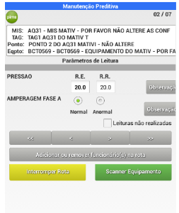 Objetivo da tela: | Incluir apontamentos de mão de obra preditiva e preventiva, agrupando os parâmetros de leitura conforme o ponto da rota a que pertencem |