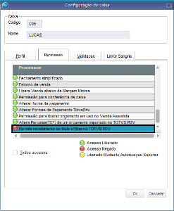 Obs.: Após realizar a alteração na permissão do caixa, é necessário realizar uma carga da tabela SLF para todos os PDV's.