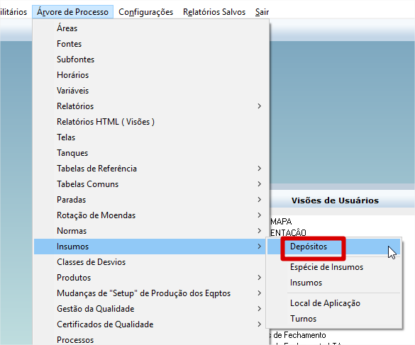 Cadastrar Depósitos para utilização no cadastro de Centro de Custos que será posteriormente utilizado no movimento de Consumo de Insumos com a finalidade de realizar rateio dos insumos.