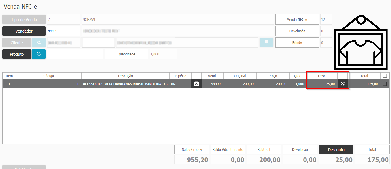 → Ao informar o cliente na venda e inserir itens, o desconto do motor promocional será aplicado corretamente, conforme configurado: