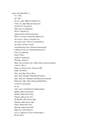 Essa configuração não deve substituir a tradução oficial. Ou seja, se houver a necessidade em compatibilizar o aplicativo TOTVS RH Clock In com um novo idioma, por favor, efetue a abertura de um ticket para solicitação ao time responsável. Essa configuração permite a configuração especifica e isolada de rótulos para melhor aderência do Clock In em ambientes mais específicos.