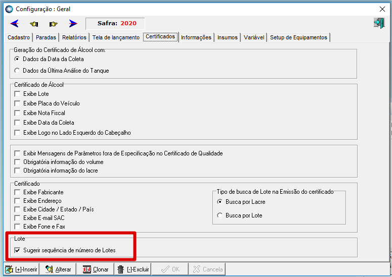 02.1. Em Configuração Geral selecionar a opção "Sugerir sequencia de número de lotes"