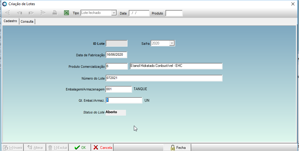 04.4. Após geração do laudo e conferidas todas as informações, voltar ao passo 04.1. e fechar o lote, clicando no botão "Fechar"