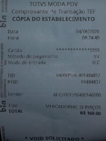 Imagem 7 - Após aprovação do recebimento, é impresso o comprovante TEF.