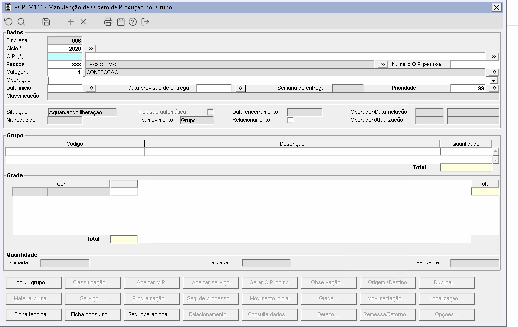 | Função: | CDFFM165 - Manutenção de Programação de Ordem de Produção por Grupo |