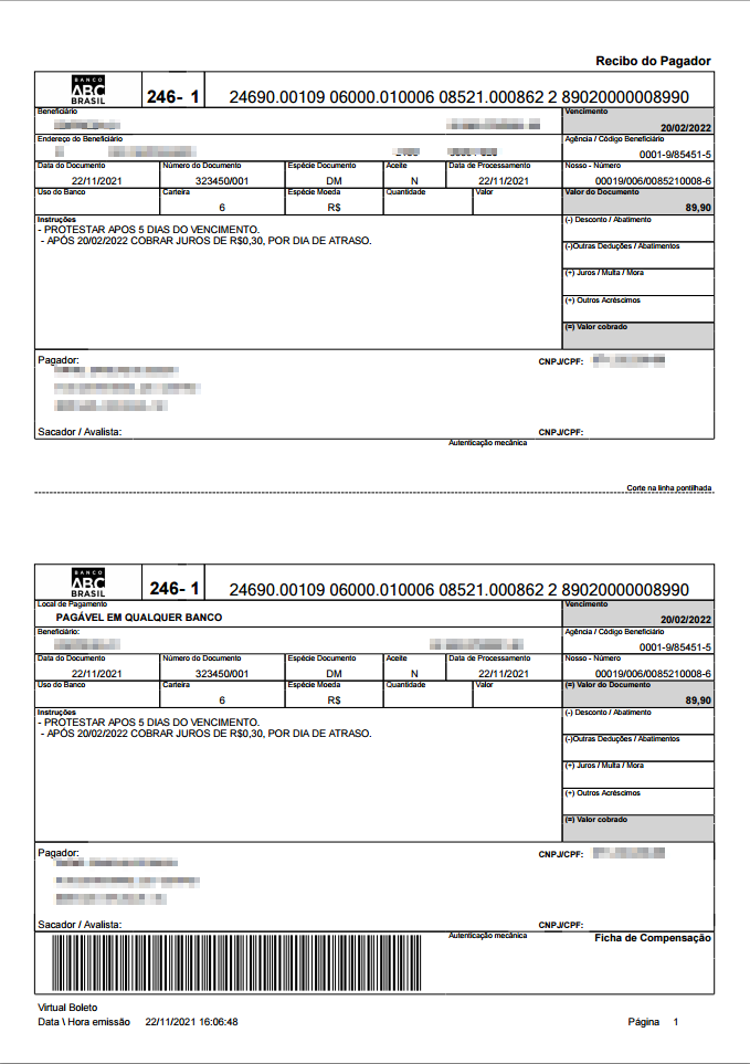 Imagem 2 - Demonstra a impressão do titulo bancário para o banco ABC Brasil.