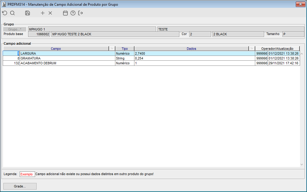 Imagem 2 - Demonstra que a espécie da matéria-prima é "MT", diferente da espécie do parâmetro demonstrado na imagem 1.