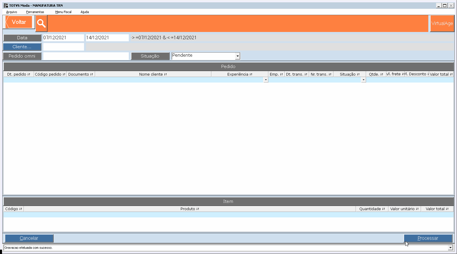 | Função: | Bloquear cancelamento de transação com origem de pedido de prateleira infinita |