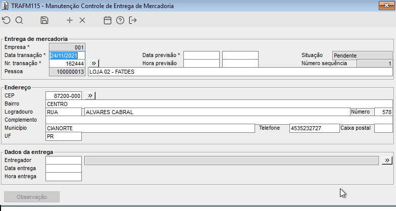 Foi notado que ao salvar as informações de data de previsão de entregas no TRAFM115, o botão "Observação" não era habilitado.