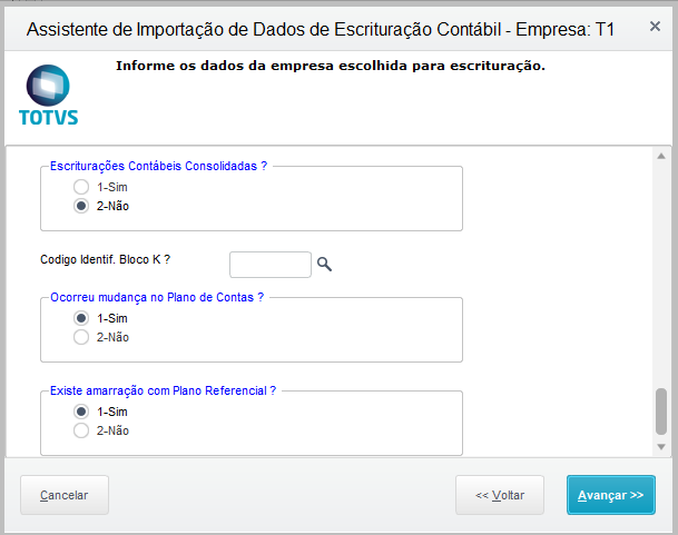 En la rutina de Registro (CTBS001) informe en la pregunta "¿Ocurrió cambio de plan de cuentas? 1-Sí"