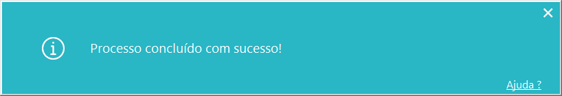 Imagem 06 - Ao acionar o botão mencionado anteriormente, a mensagem acima é apresentada, informado que o processo foi concluído com sucesso.