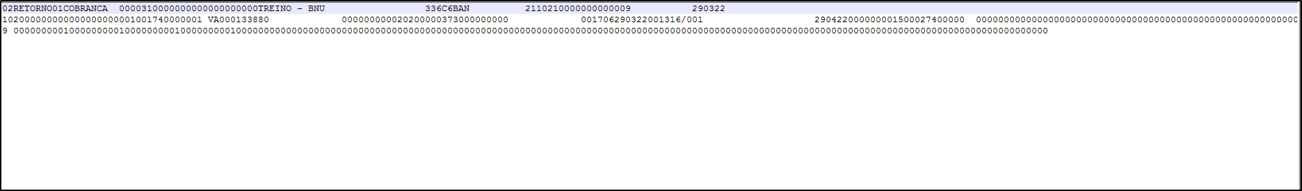 Imagem 04 - Demonstra o arquivo de retorno, que será gerado pelo banco com as informações referente a fatura.