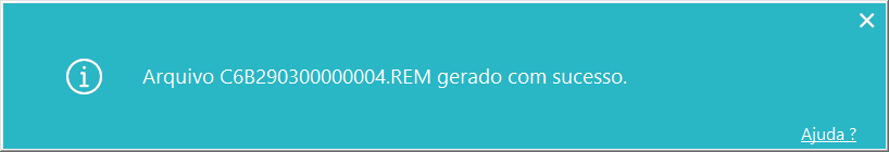Imagem 03 - Ao acionar o botão mencionado anteriormente, a mensagem acima é apresentada informando que o arquivo foi gerado com sucesso.