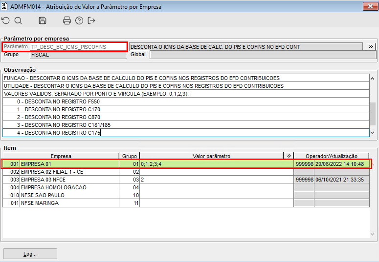 Imagem 3.03 - Gerando o arquivo sem incluir o valor 4 no parâmetro TP_DESC_BC_ICMS_PISCOFINS.