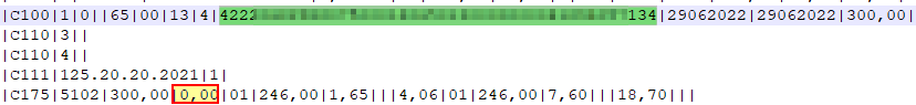 Imagem 3.05 - Sendo assim ao gerar novamente o arquivo o valor do ICMS do item passa a compor o valor do campo 04 do registro C175.