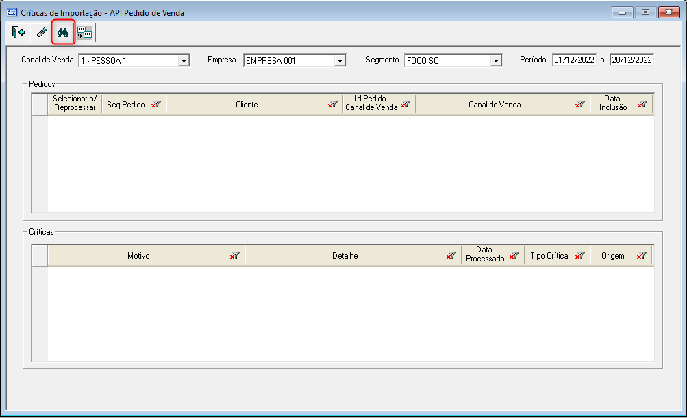 Logo após preenchimento dos dados efetuar a Busca para verificação do Log de Críticas.