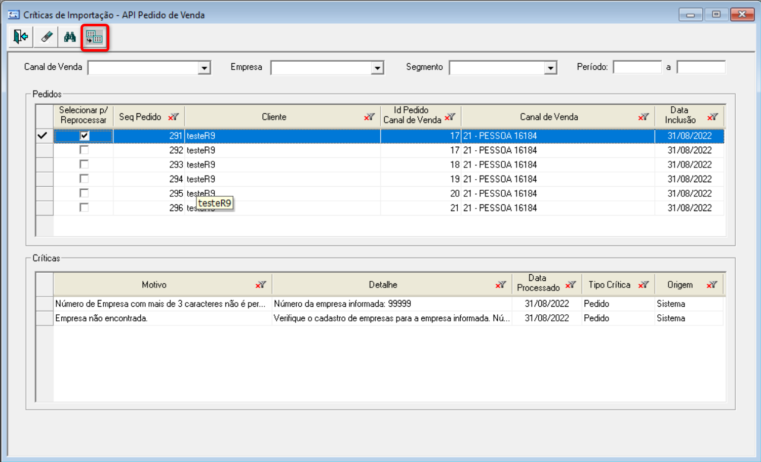 Imagem 5 - Reprocessar Pedido Selecionado.