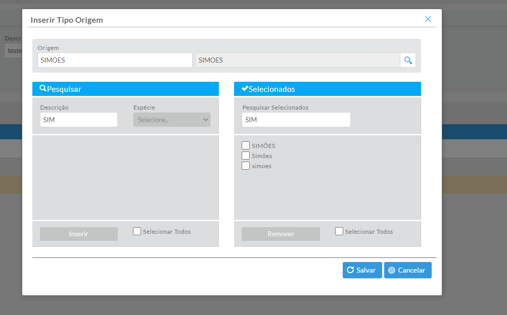 Ao realizar a busca das origens cadastradas na criação/edição do agrupamento do fluxo de caixa, não esta localizando as origens cadastradas em minúsculas.