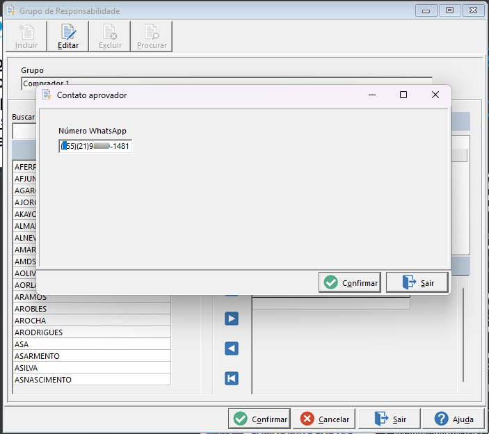 Nesse documento será descrito como configurar o número de telefone celular no usuário aprovador para o uso do "RADZAP".