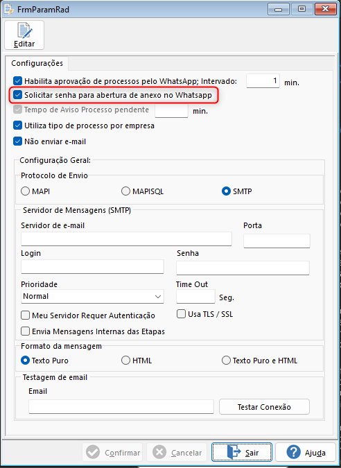 Após a configuração do RADZAP basta iniciar um dos fluxos operacionais que dão início ao fluxo de aprovação do RAD para que as mensagens instantâneas no WhatsApp sejam enviadas aos Aprovadores.