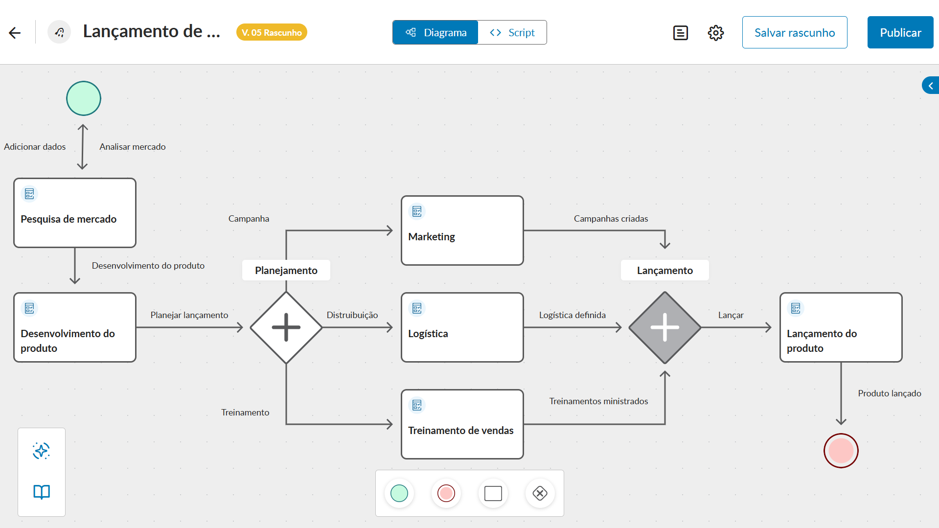 modelar o diagrama do processo arrastando e soltando os componentes no local desejado, deixando o fluxo fácil de entender e ao mesmo tempo bonito;